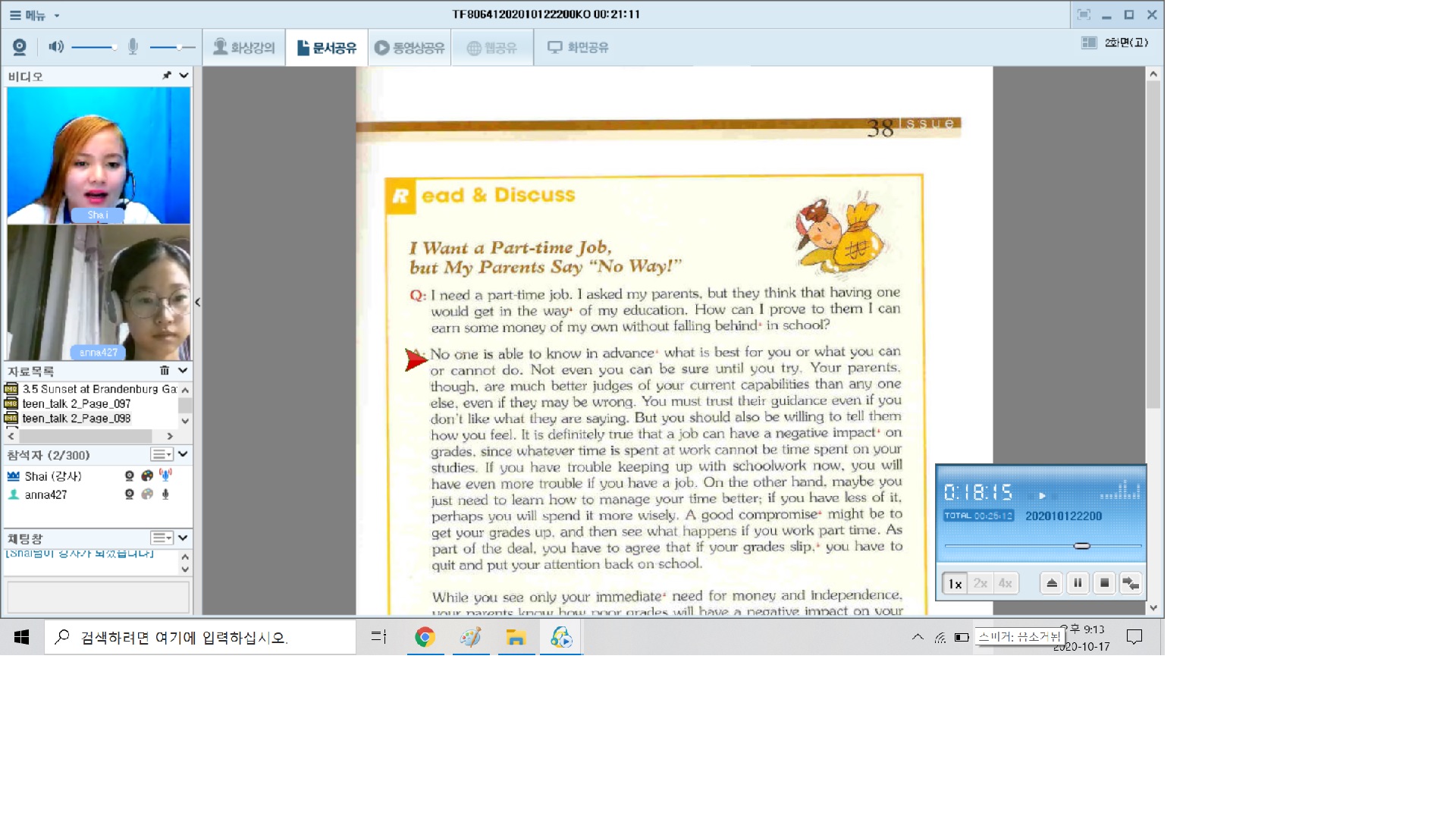 토크펀과 꾸준히 수업을 진행하고 있습니다. 중간고사, 기말고사로 바쁘기도 하지만 토크펀 수업을 빠지지 않고 수업을 받...