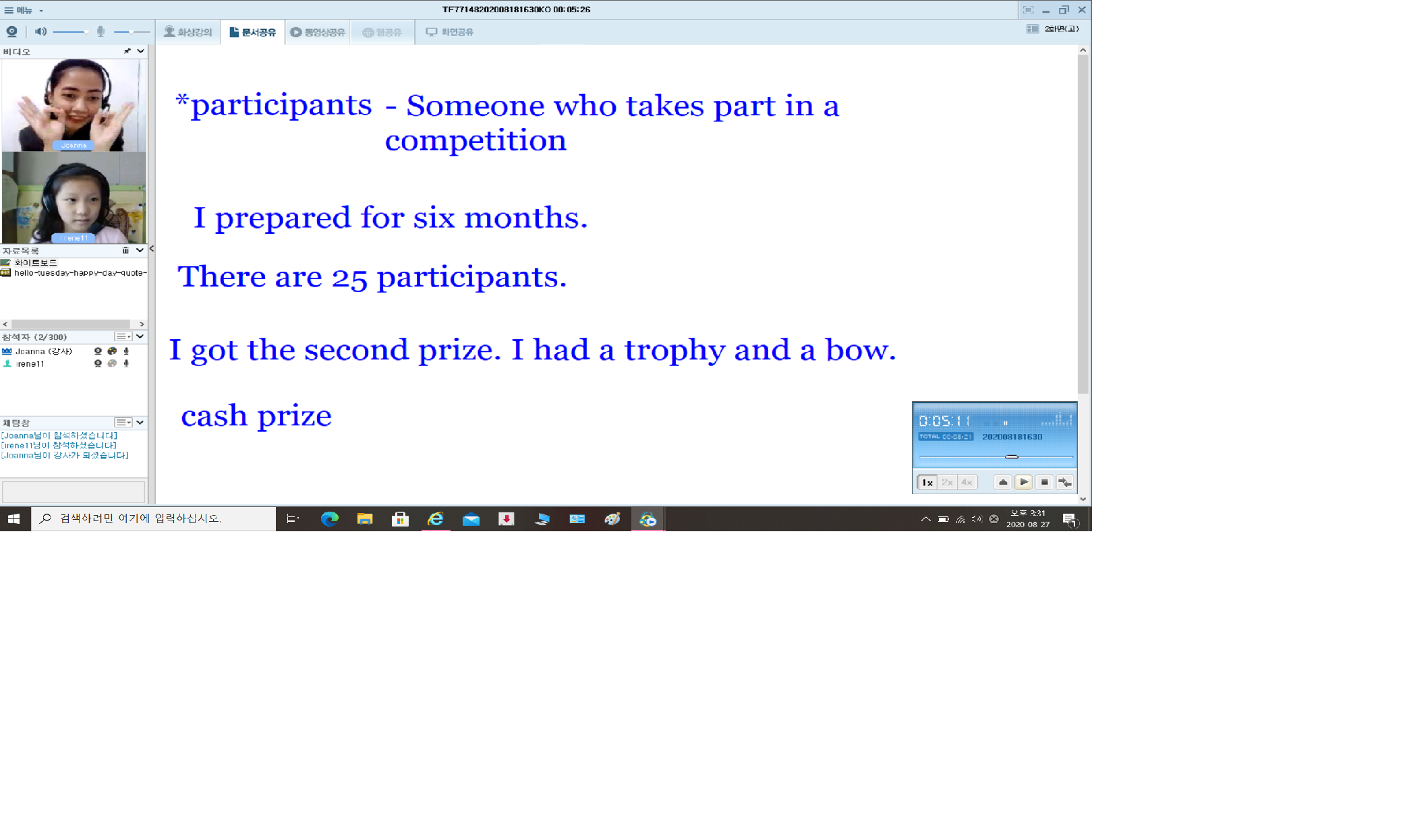 선생님과 함께 한 시간이 너무 즐겁다는 아이입니다. 선생님 앞에서 노래도 부르는 모습, 하루 있었던 일을 이야기 ...