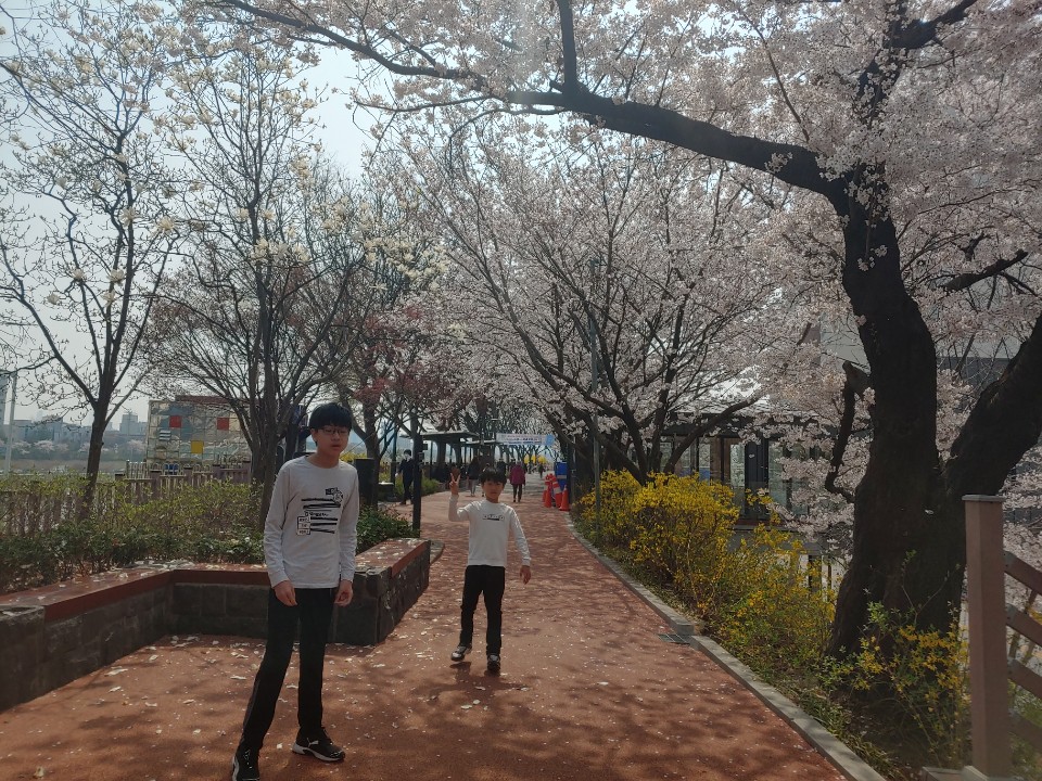 벗꽃이 예쁘게 피었네요. 아이와 집밥을 너무 많이 먹었더니 너무 힘들어 잠깐 외출하는 중간 벗꽃구경도 하며 사진 한...
