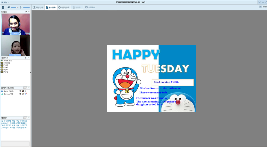 미아 선생님과 계속 하고 있어요. 수업 시간을 늘리고 싶은데 선생님 수업시간이 차 있어서 대기중이에요. 요즘 코로...