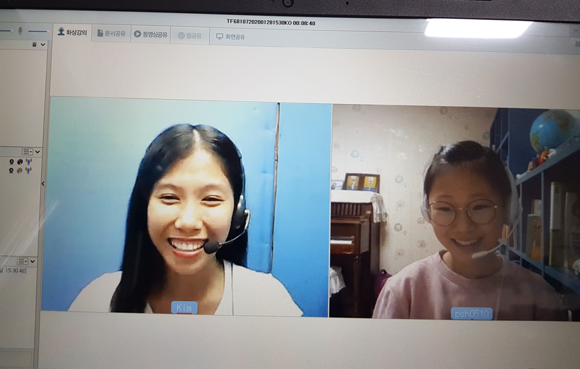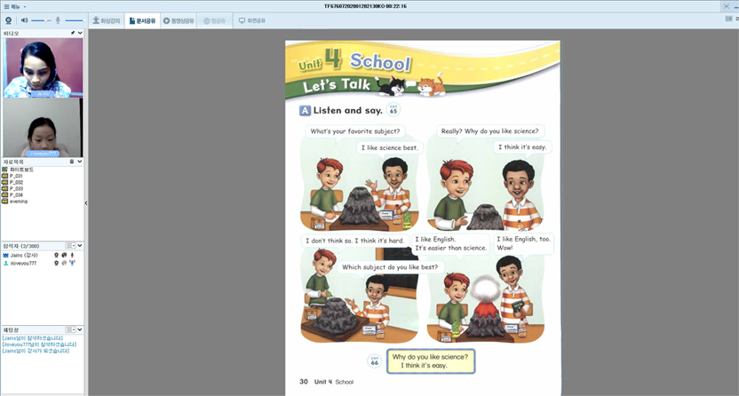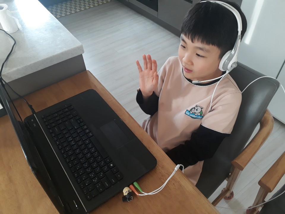 아이가 화상영어 첫선생님이셨던 젤리선생님과 정이 많이 들었었나봐요^^ 킴선생님과의 수업이 아직은 쑥스러운듯하지만 곧...