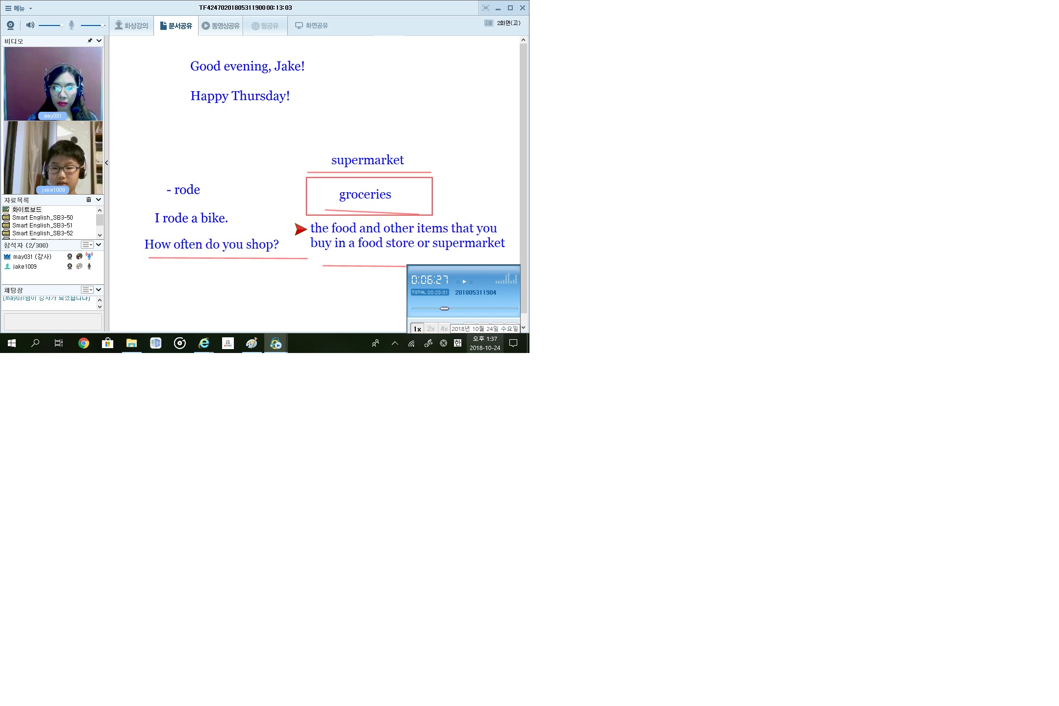 토크편을 시작한지 1년 반 개월 정도 지났네요. 아이는 영어를 놀이 하듯이 넘넘 재밌게 공부하네요.*^^* 1대 1...