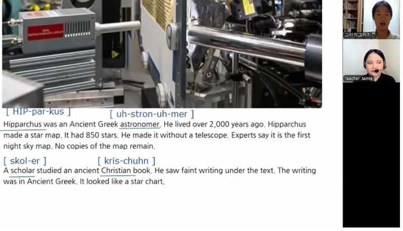 Lucy는 화상영어 수업을 통해 발음과 문장 표현에서 많은 도움을 받고 있습니다.